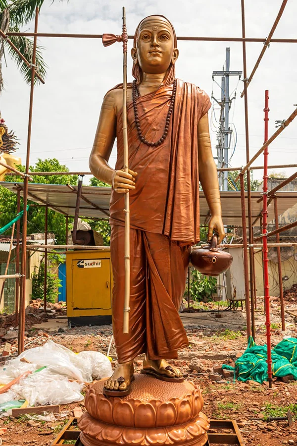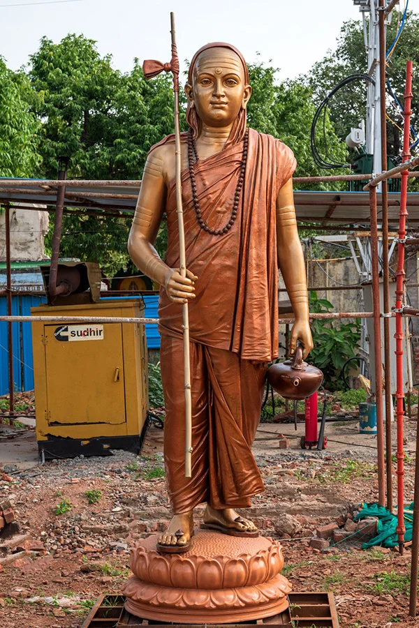 Støbeprocessen for denne 12,5 meter høje og 85 tons tunge bronzestatue er et eksempel på moderne metalhåndværk. Tongqing-teamet i Jiangxi-provinsen brugte teknologien "segmenteret støbning + samlet svejsning" til at opdele statuen i 37 moduler til separat støbning og opnåede derefter millimeterniveau-docking ved hjælp af et laserpositioneringssystem. Blandt dem er modellen af Vedanta Sutra, som Shankara holder, kun 3 mm tynd, men mere end 2.000 sanskrit-skrifter skal ætses på overfladen. Den uafhængigt udviklede "mikro-udskærings-elektrolytiske ætsningsmetode" brød med succes igennem den tekniske flaskehals.